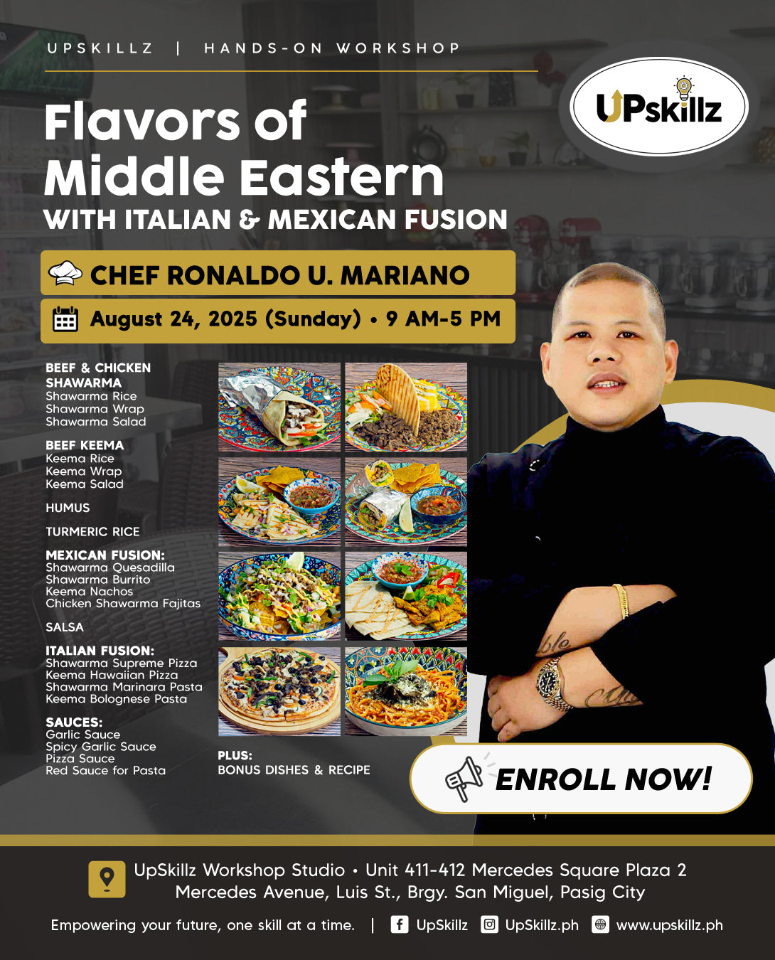 Whether you're running a resto, food cart, or just hungry for culinary growth — this is the workshop to master flavor fusion and wow your market.