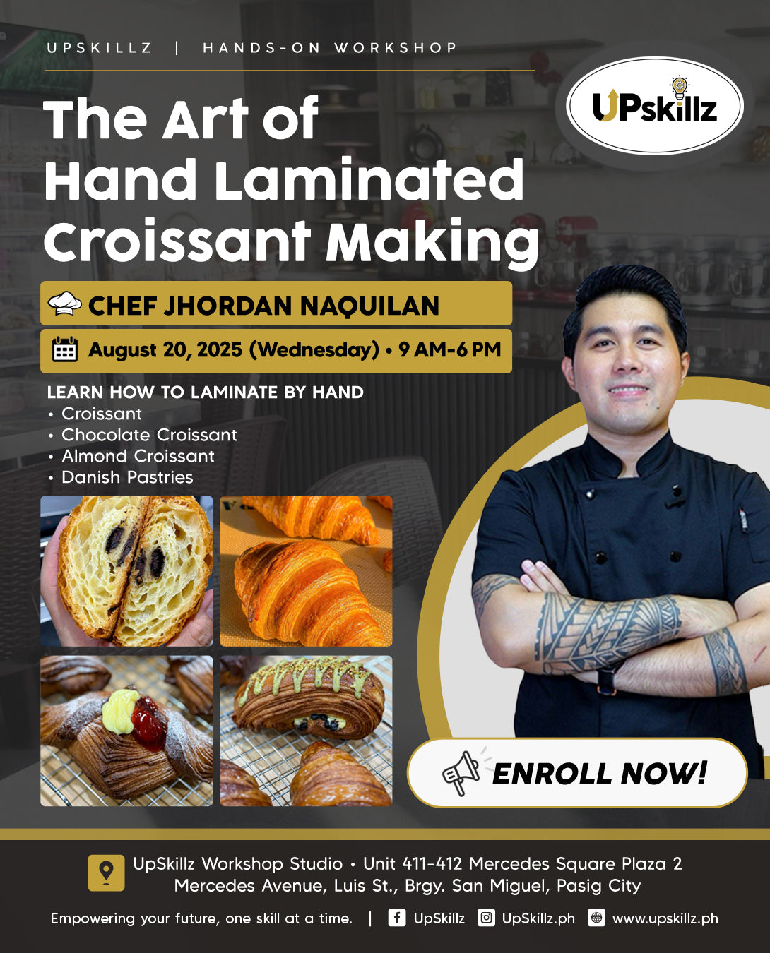 Join us for a hands-on workshop with the one and only Chef Jhordan Naquilan – one of the best in the field when it comes to laminated doughs and artisan baking!