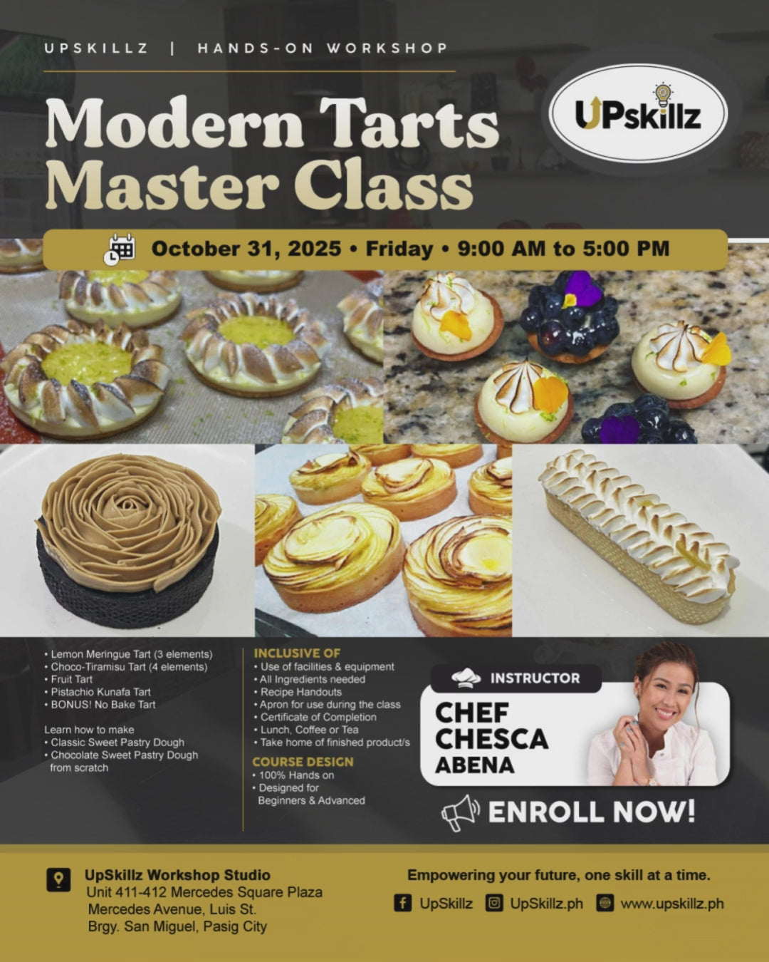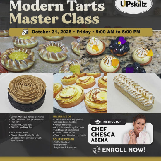 Learn from Chef Chesca Abena, a French-trained pastry chef with experience at a Michelin-starred hotel in Monaco and the creative force behind Mon Rêve Paris, with branches in BF Homes Parañaque and Power Plant Mall.